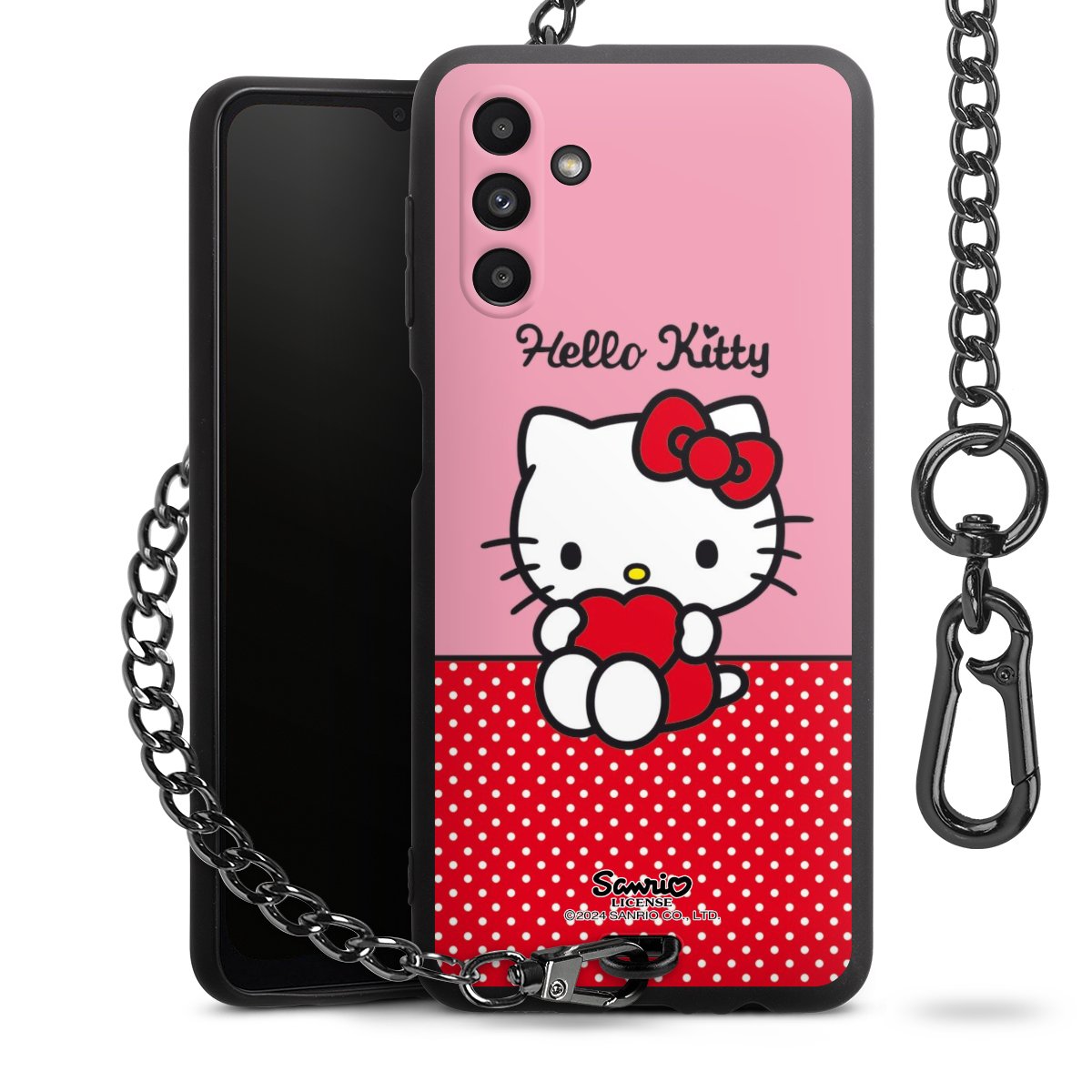 Die mattschwarze Silikon-Handyhülle besteht aus robustem TPU (thermoplastisches Polyurethan). Sie ist flexibel und schützt Dein Smartphone vor Stößen und Kratzern. Die Kette sowie der Karabinerhaken sind aus Metall in Gunmetal-Optik gefertigt. Für dieses Produkt kommen ausschließlich TÜV-geprüfte Materialien zum Einsatz.