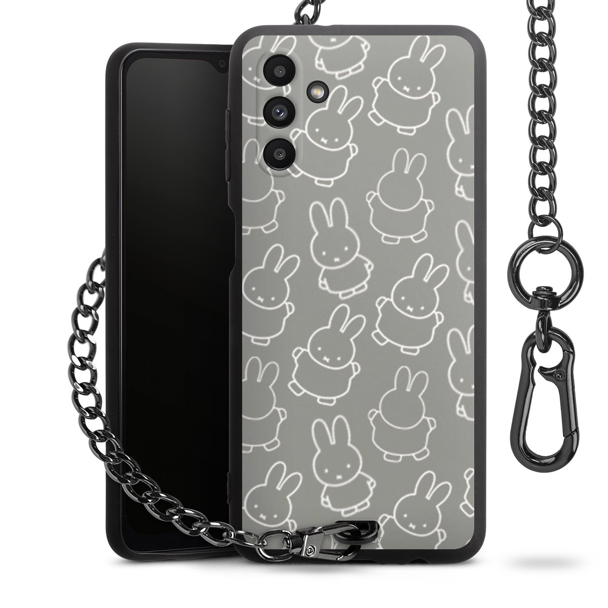 • Mattschwarze Handyhülle mit Metallkette