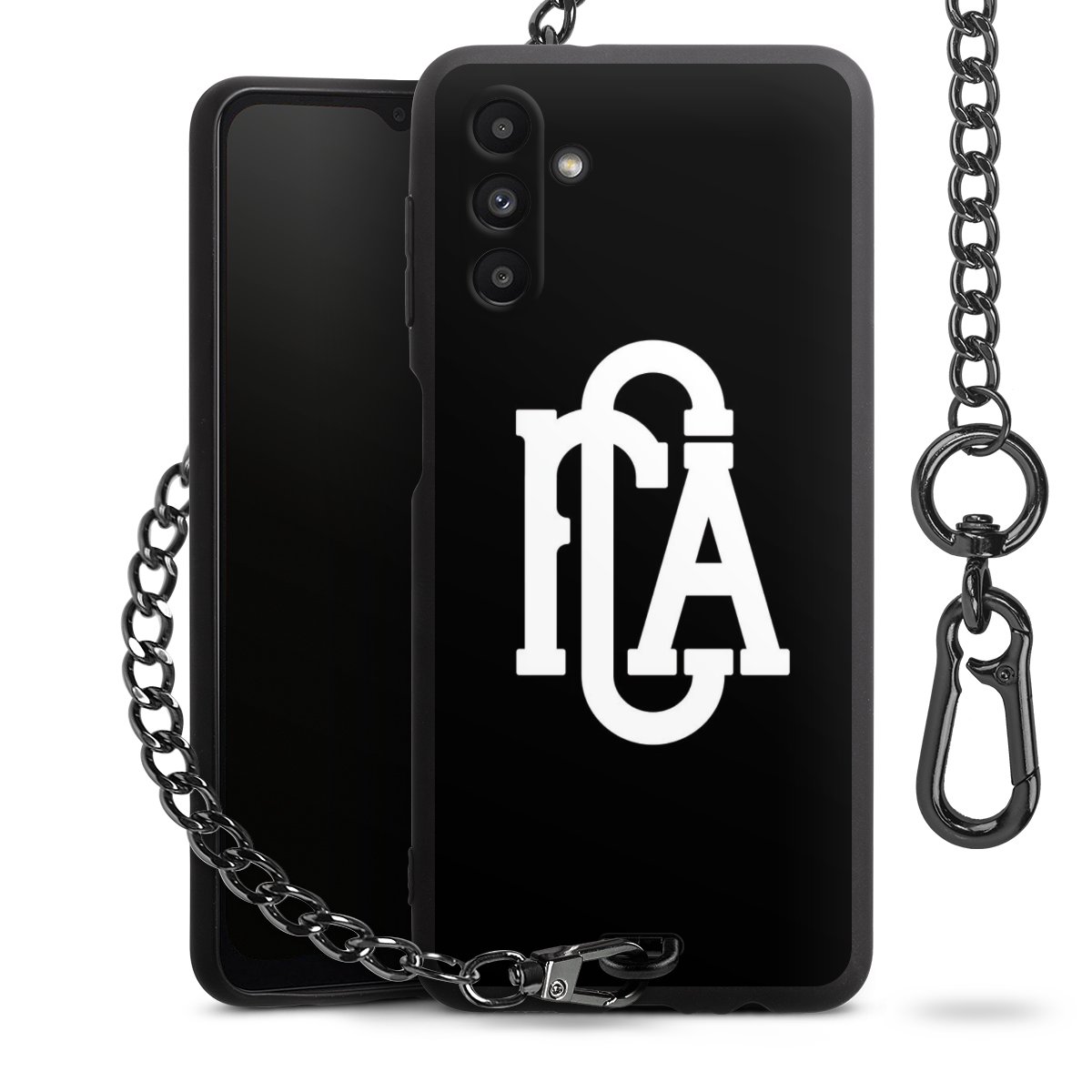 • Mattschwarze Handyhülle mit Metallkette