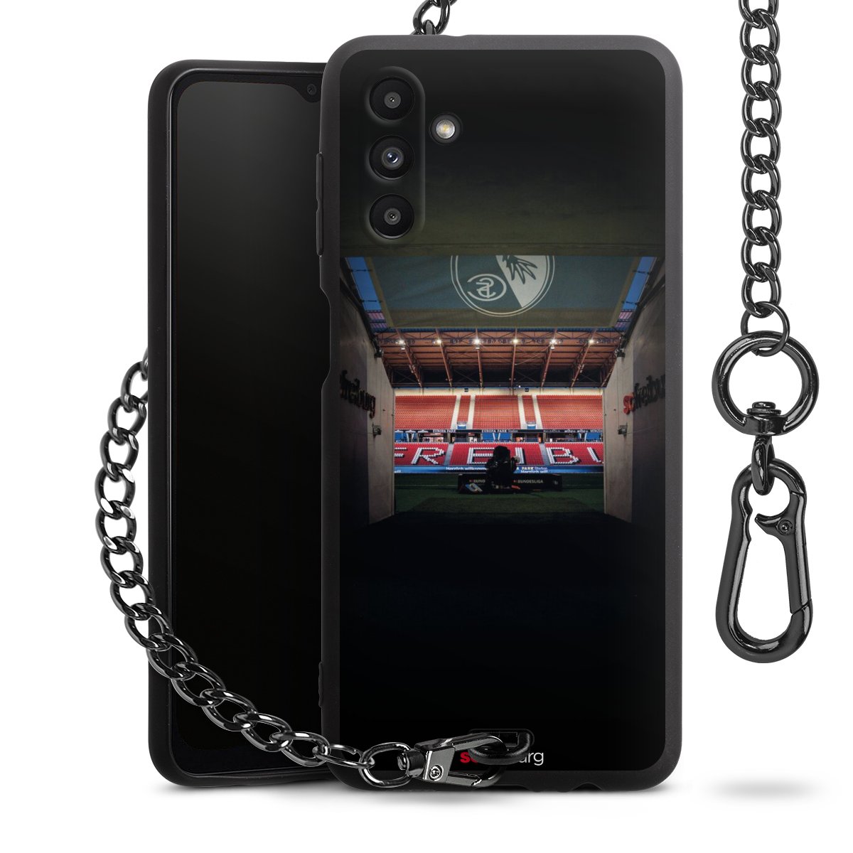 • Mattschwarze Handyhülle mit Metallkette