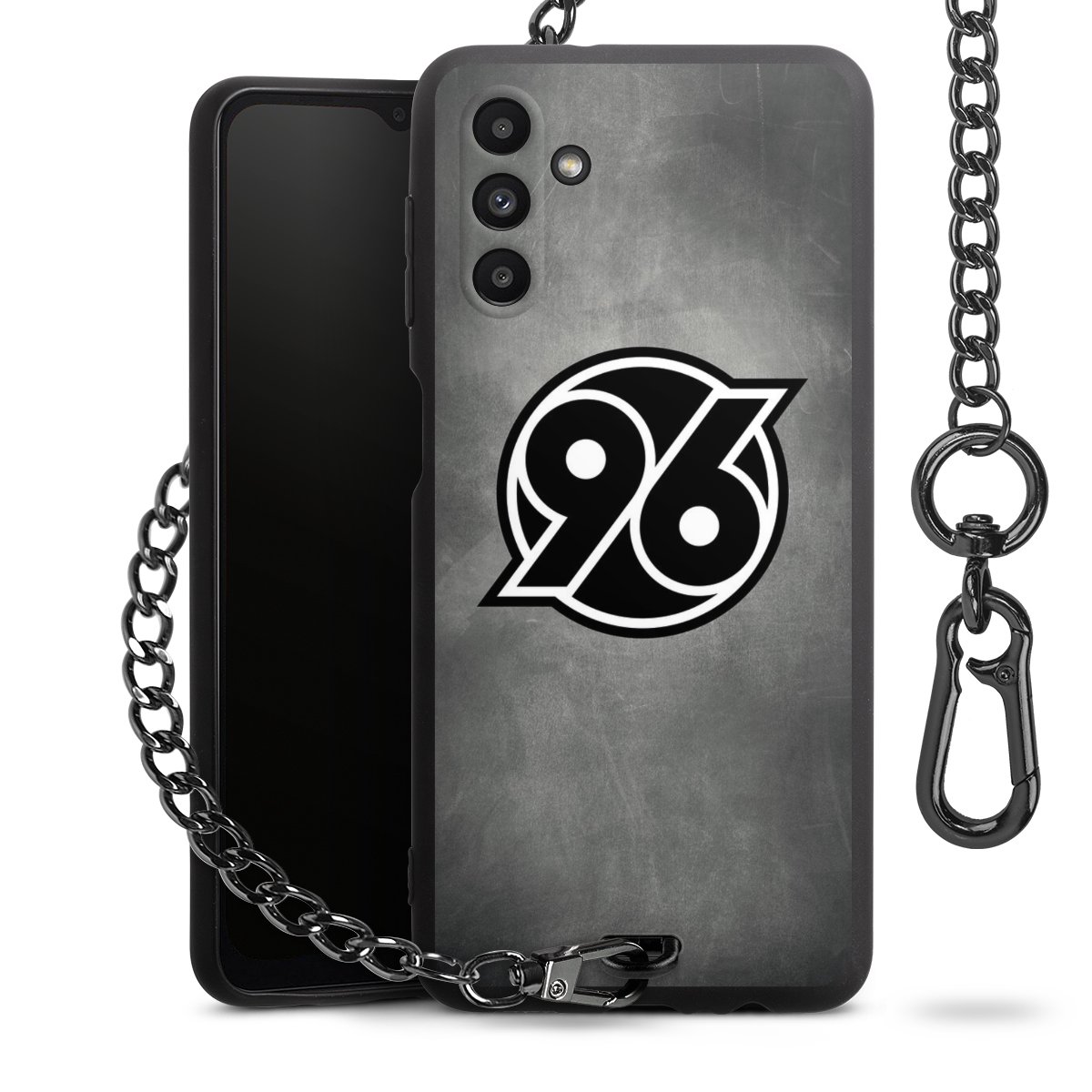 • Mattschwarze Handyhülle mit Metallkette