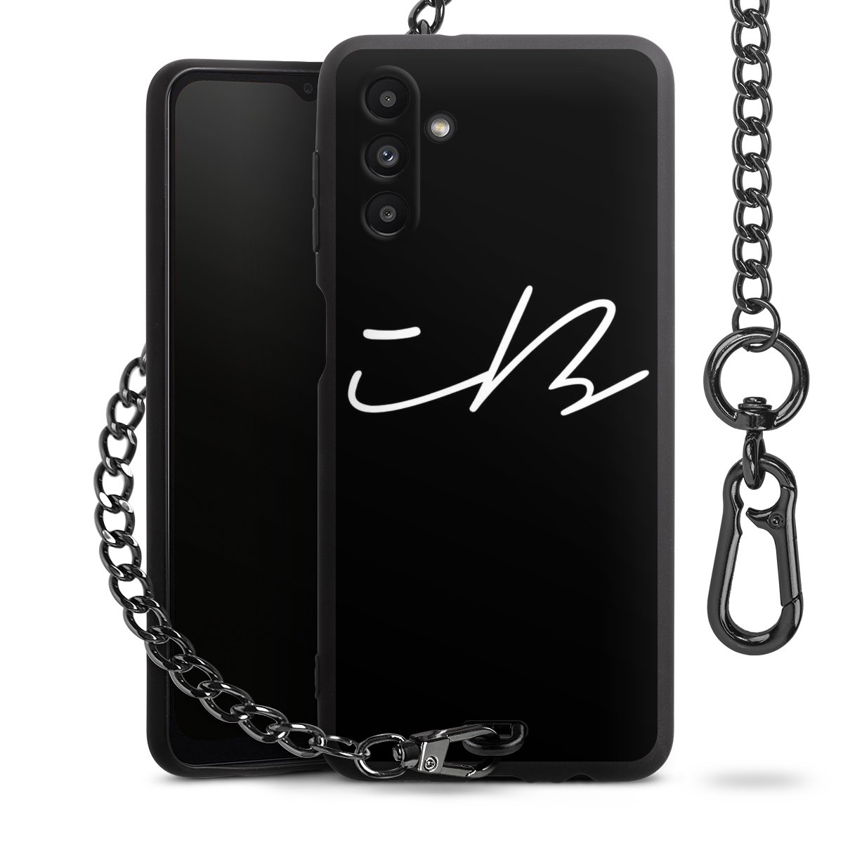 • Mattschwarze Handyhülle mit Metallkette