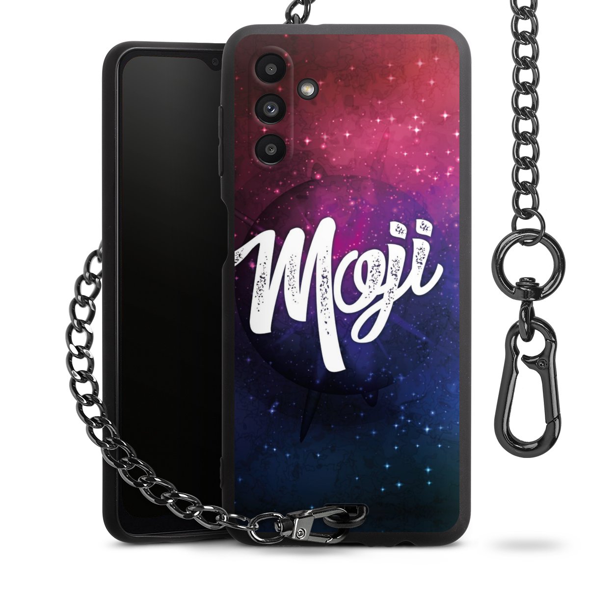 • Mattschwarze Handyhülle mit Metallkette