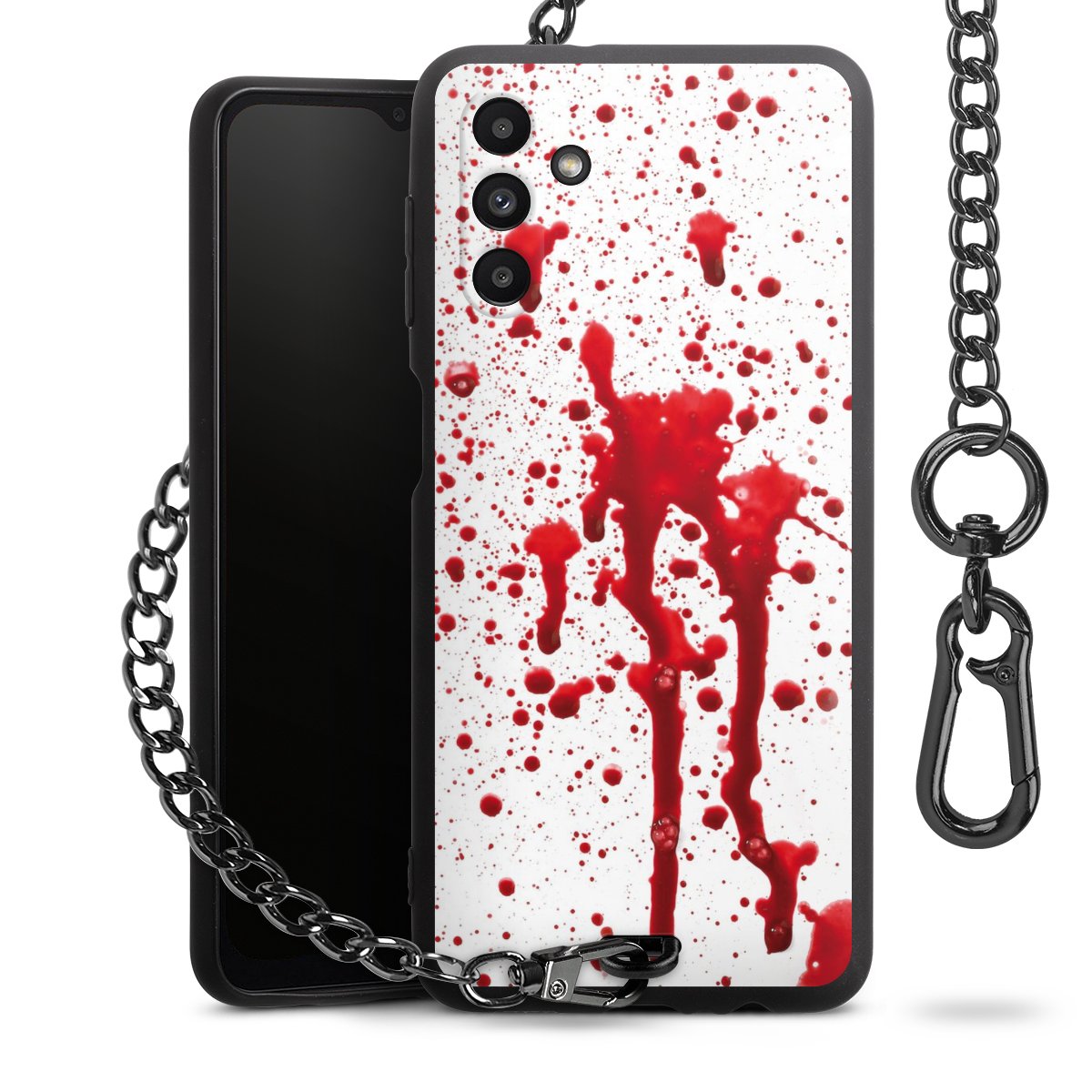 - Mattschwarze Handyhülle mit Metallkette