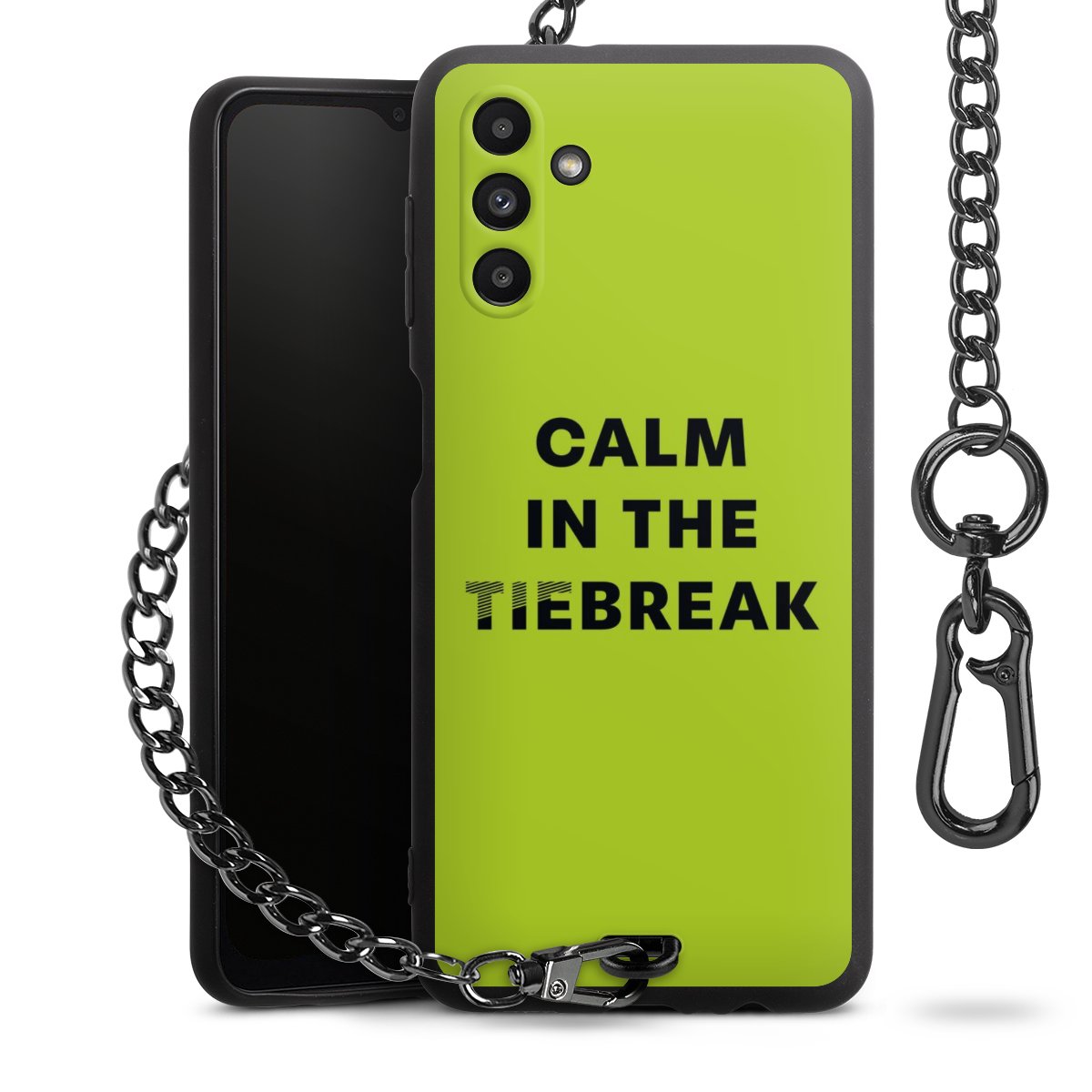 - Mattschwarze Handyhülle mit Metallkette