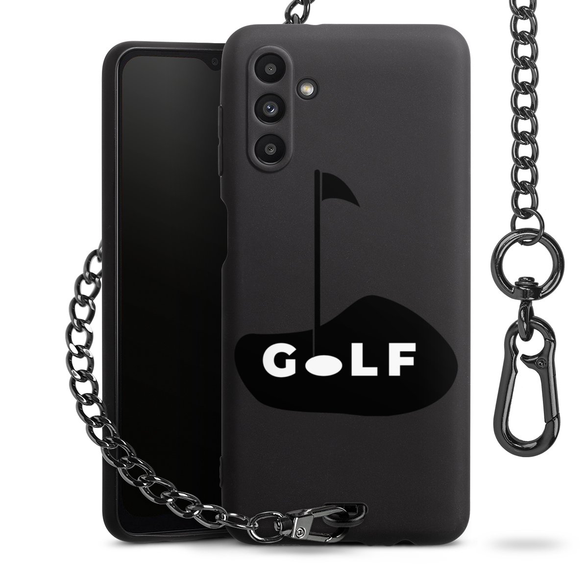 • Mattschwarze Handyhülle mit Metallkette