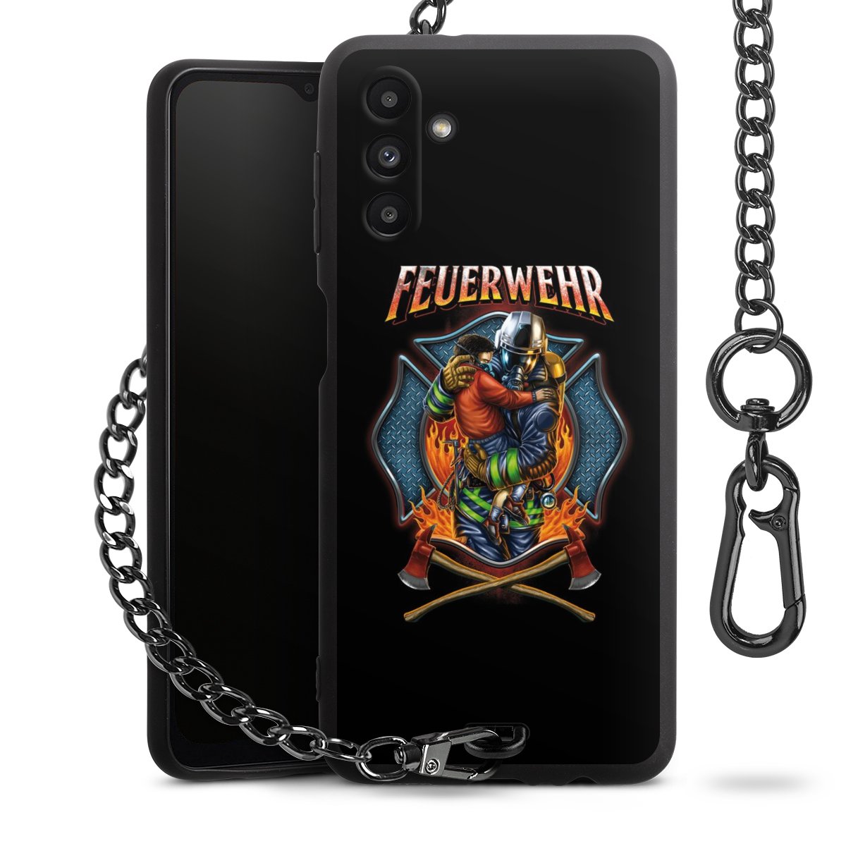 • Mattschwarze Handyhülle mit Metallkette