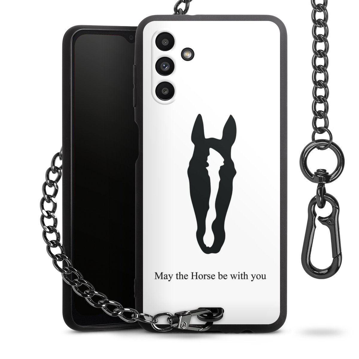 - Mattschwarze Handyhülle mit Metallkette
