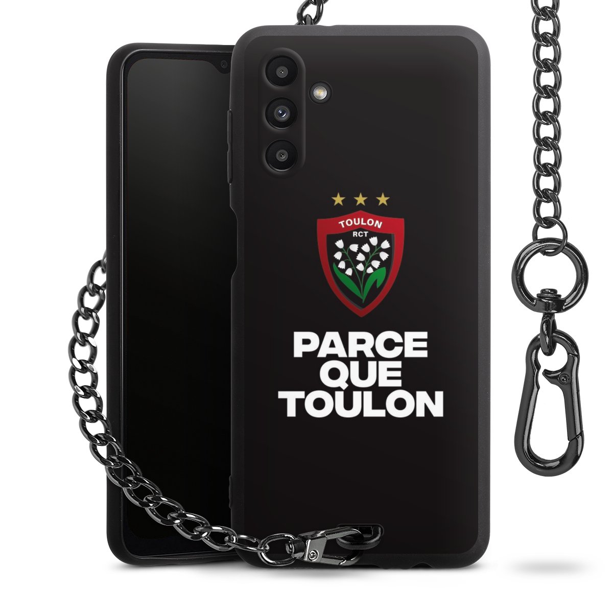 - Mattschwarze Handyhülle mit Metallkette