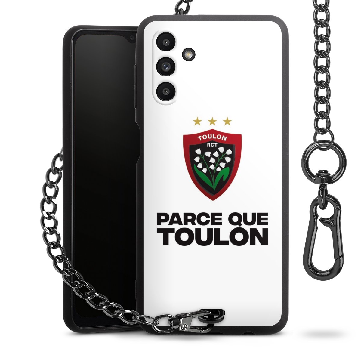 - Mattschwarze Handyhülle mit Metallkette