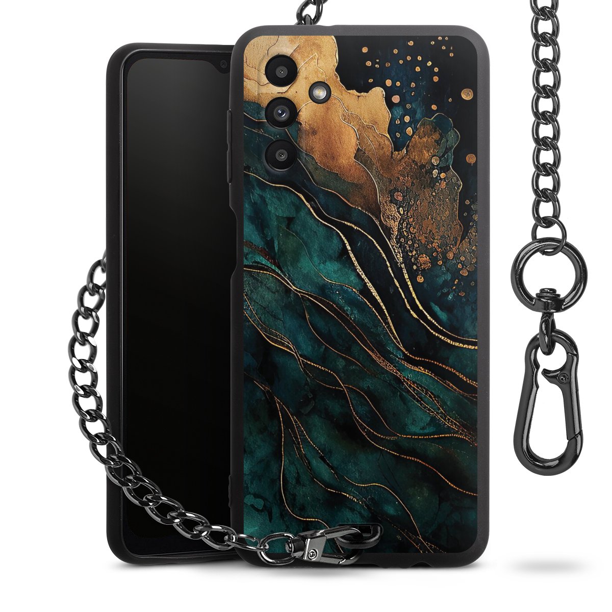 • Mattschwarze Handyhülle mit Metallkette