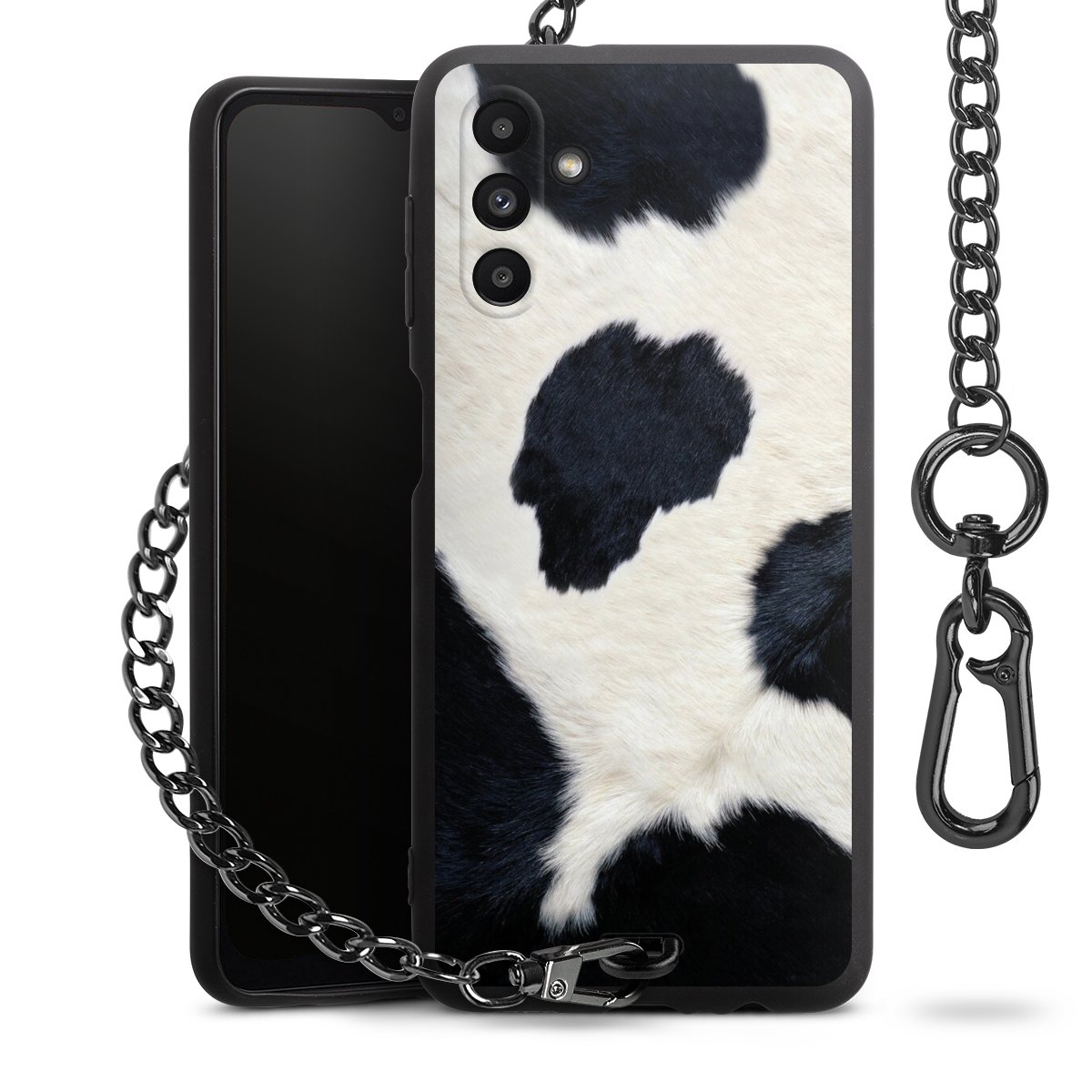 - Mattschwarze Handyhülle mit Metallkette
