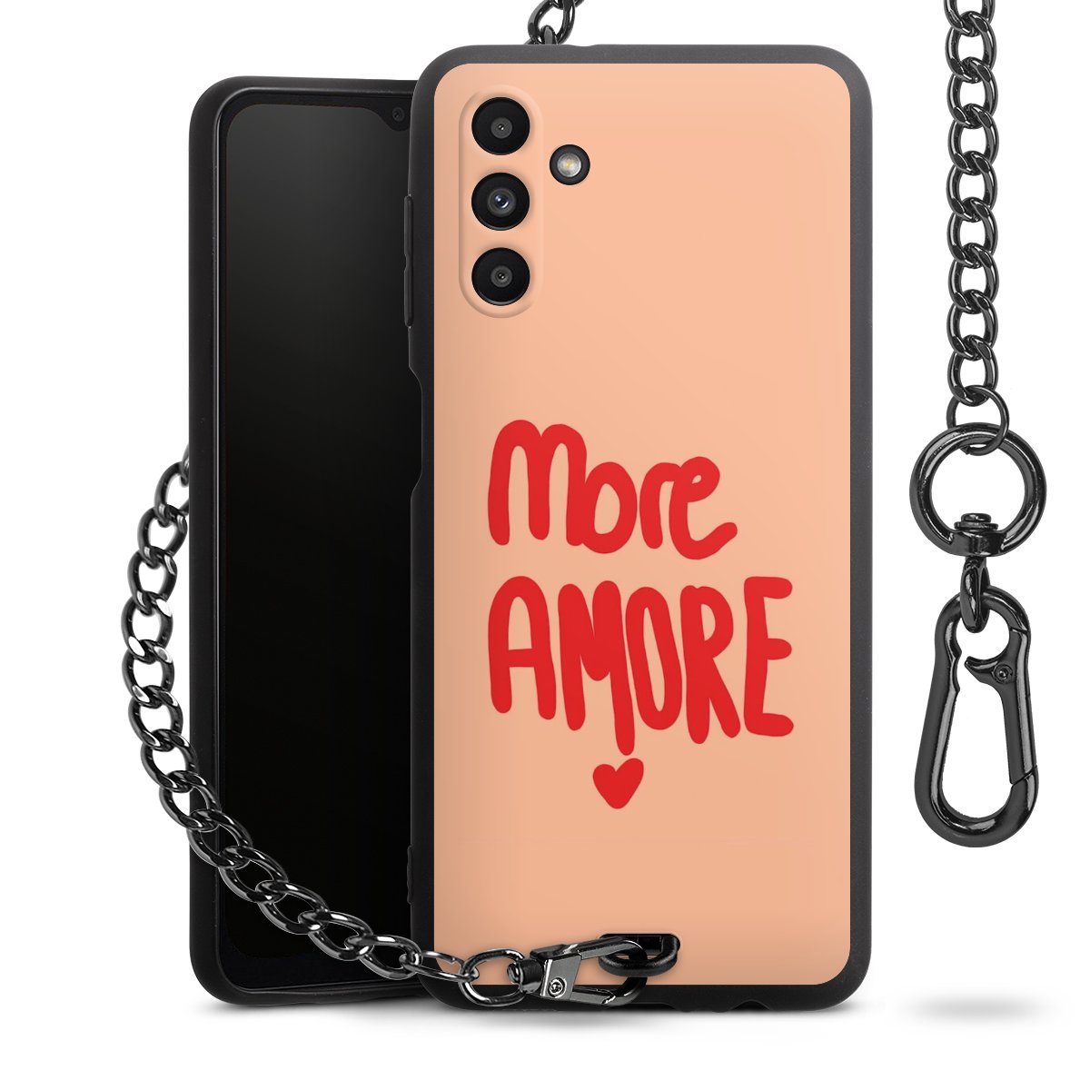 • Mattschwarze Handyhülle mit Metallkette