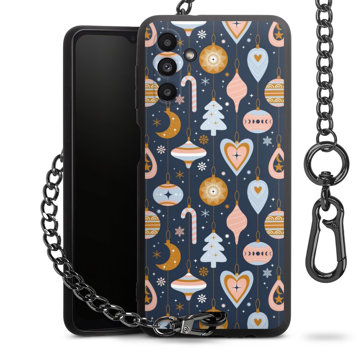 • Mattschwarze Handyhülle mit Metallkette