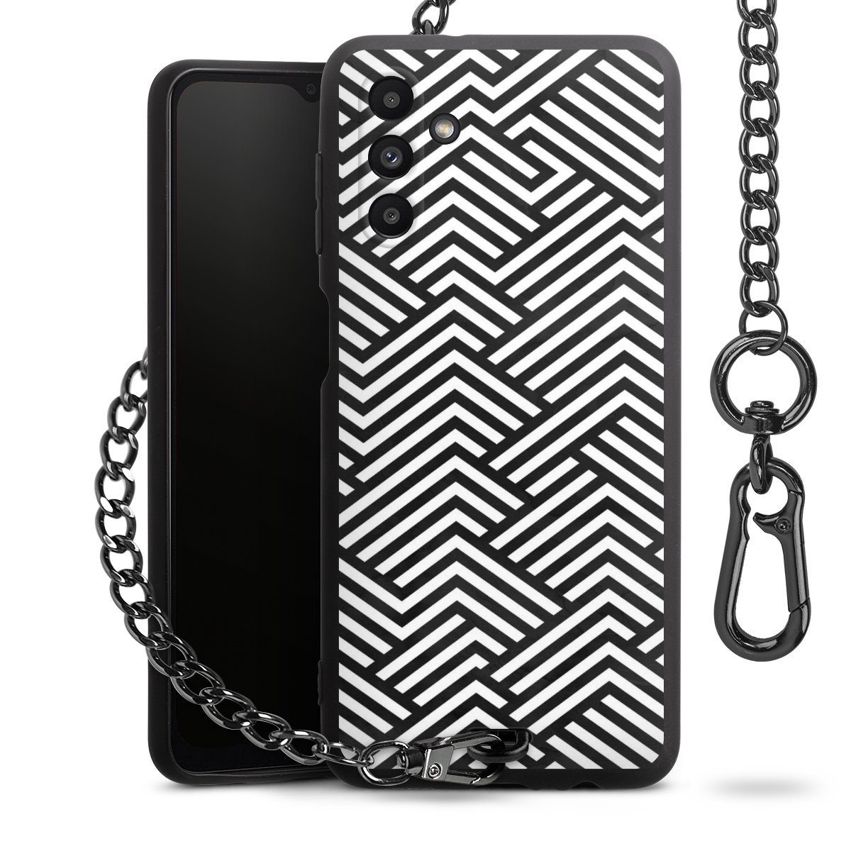 • Mattschwarze Handyhülle mit Metallkette