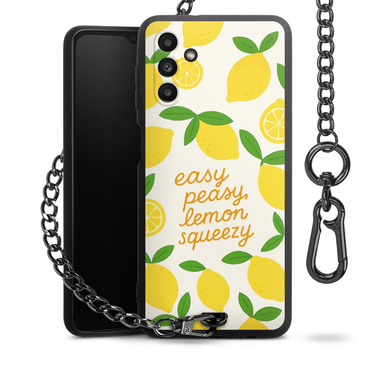 - Mattschwarze Handyhülle mit Metallkette