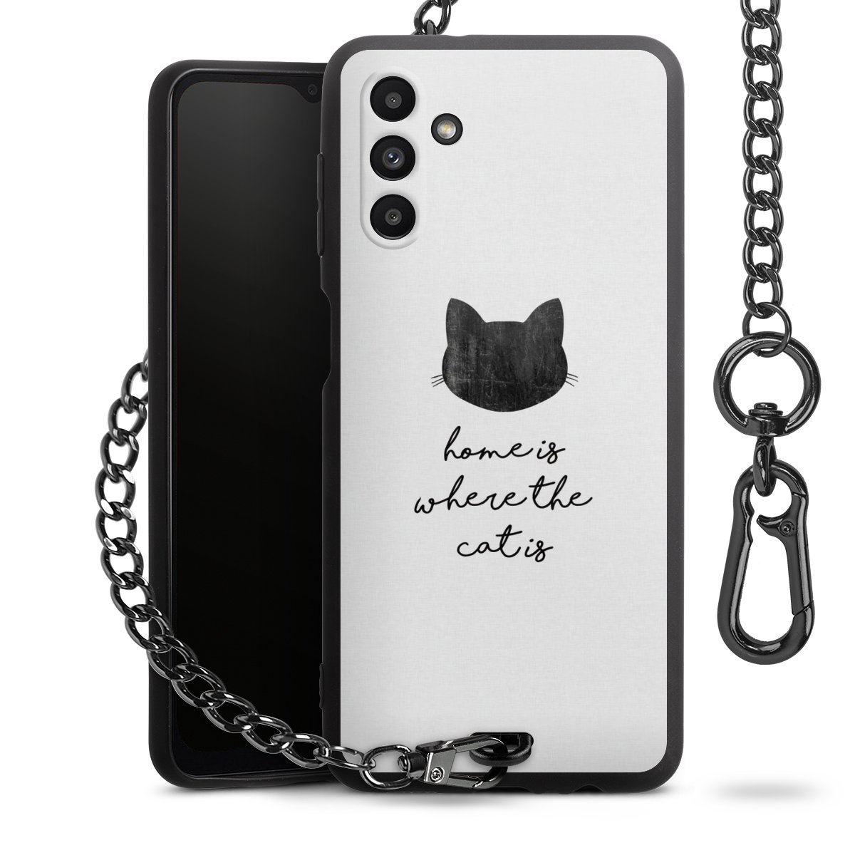 • Mattschwarze Handyhülle mit Metallkette
