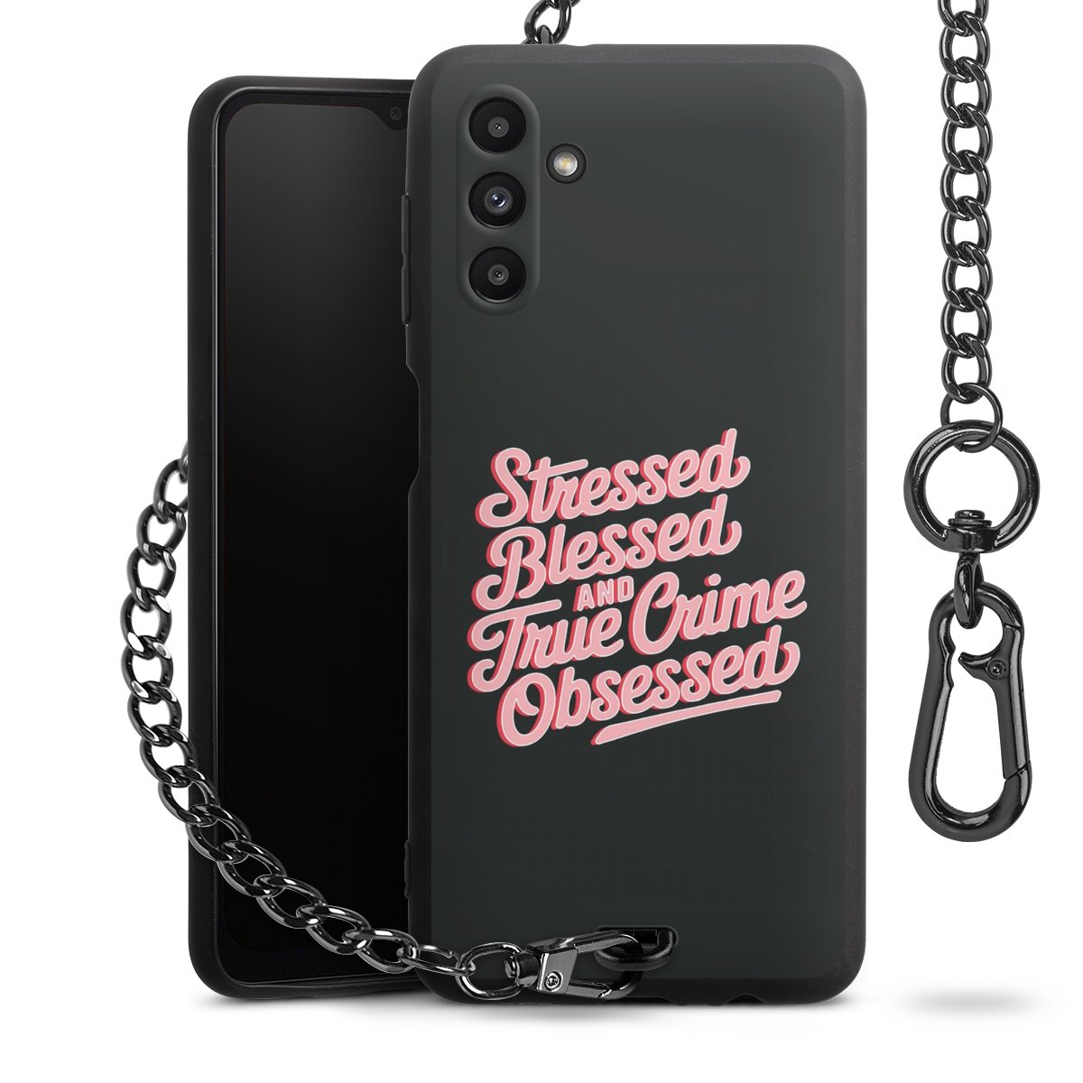 • Mattschwarze Handyhülle mit Metallkette