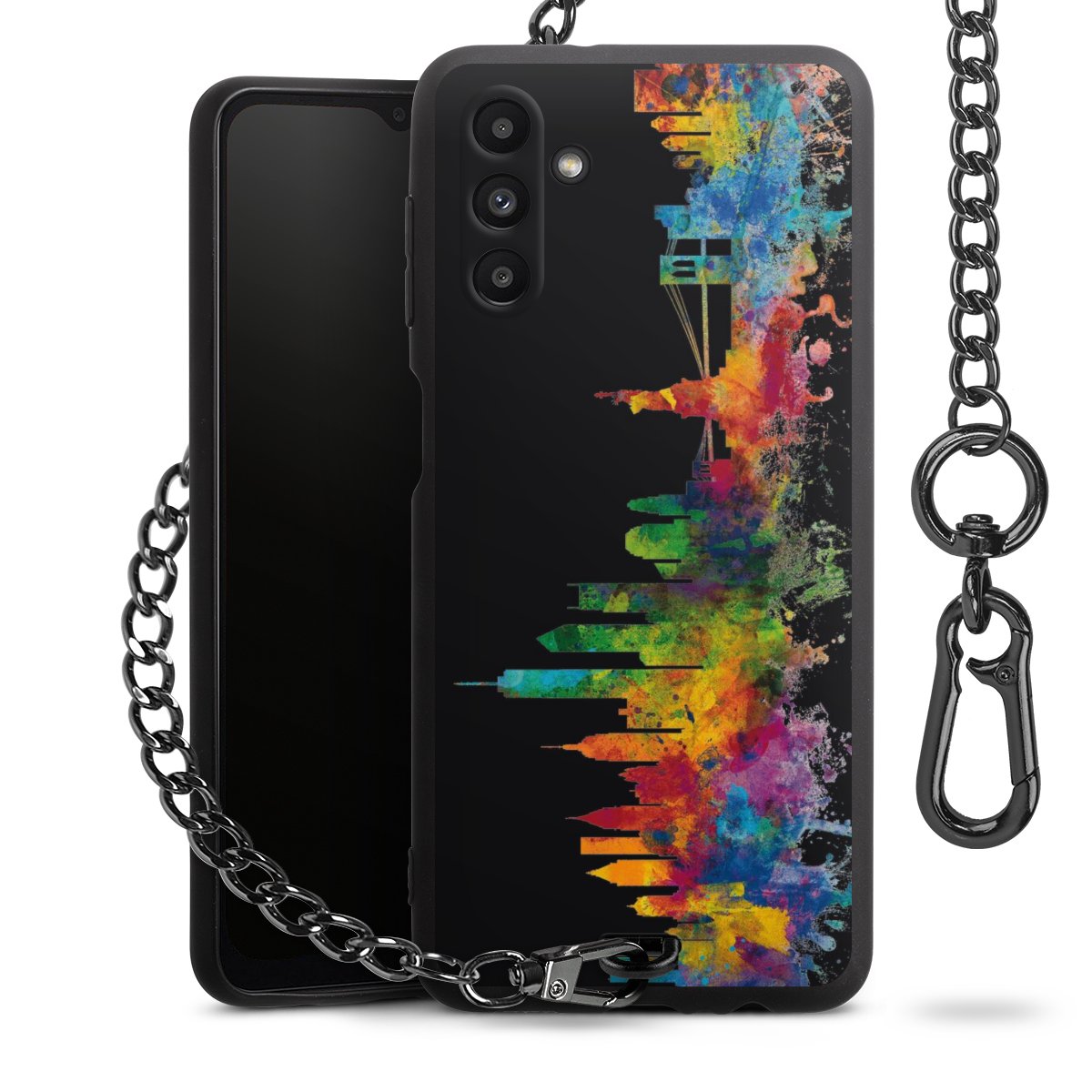 • Mattschwarze Handyhülle mit Metallkette