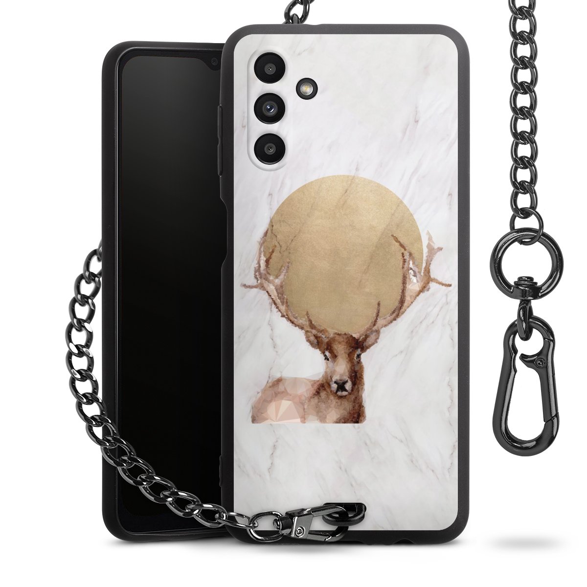 • Mattschwarze Handyhülle mit Metallkette