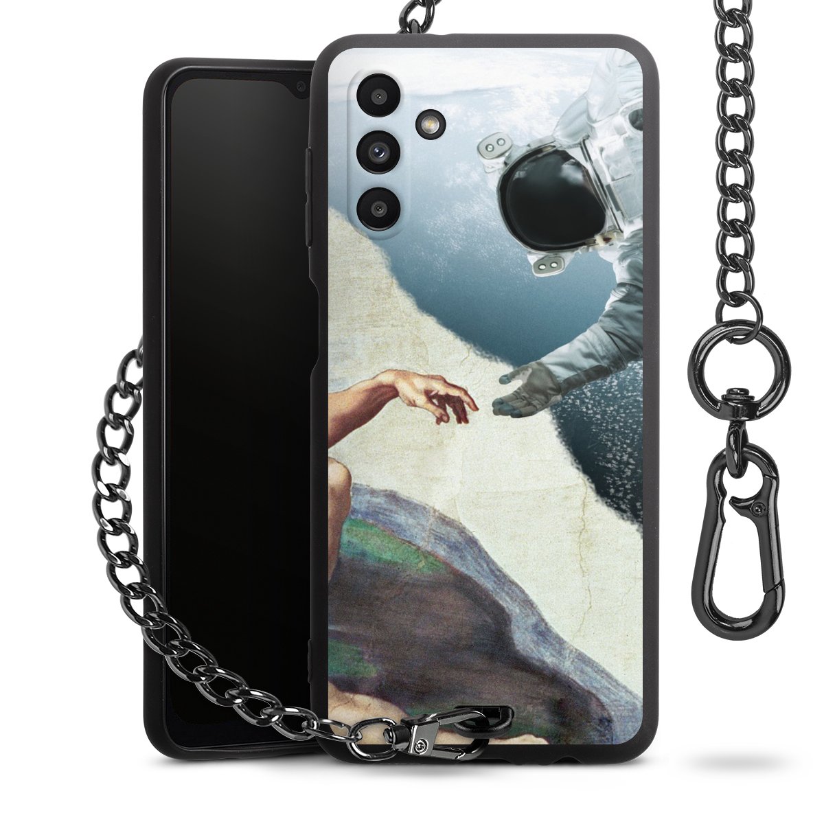 - Mattschwarze Handyhülle mit Metallkette