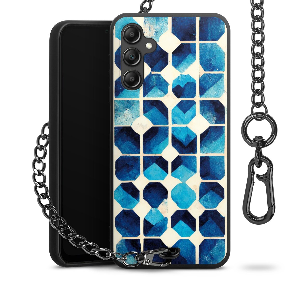 • Mattschwarze Handyhülle mit Metallkette
