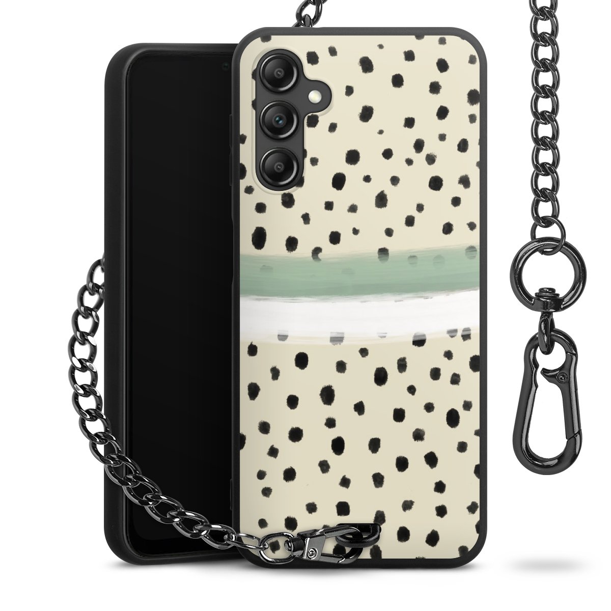 • Mattschwarze Handyhülle mit Metallkette