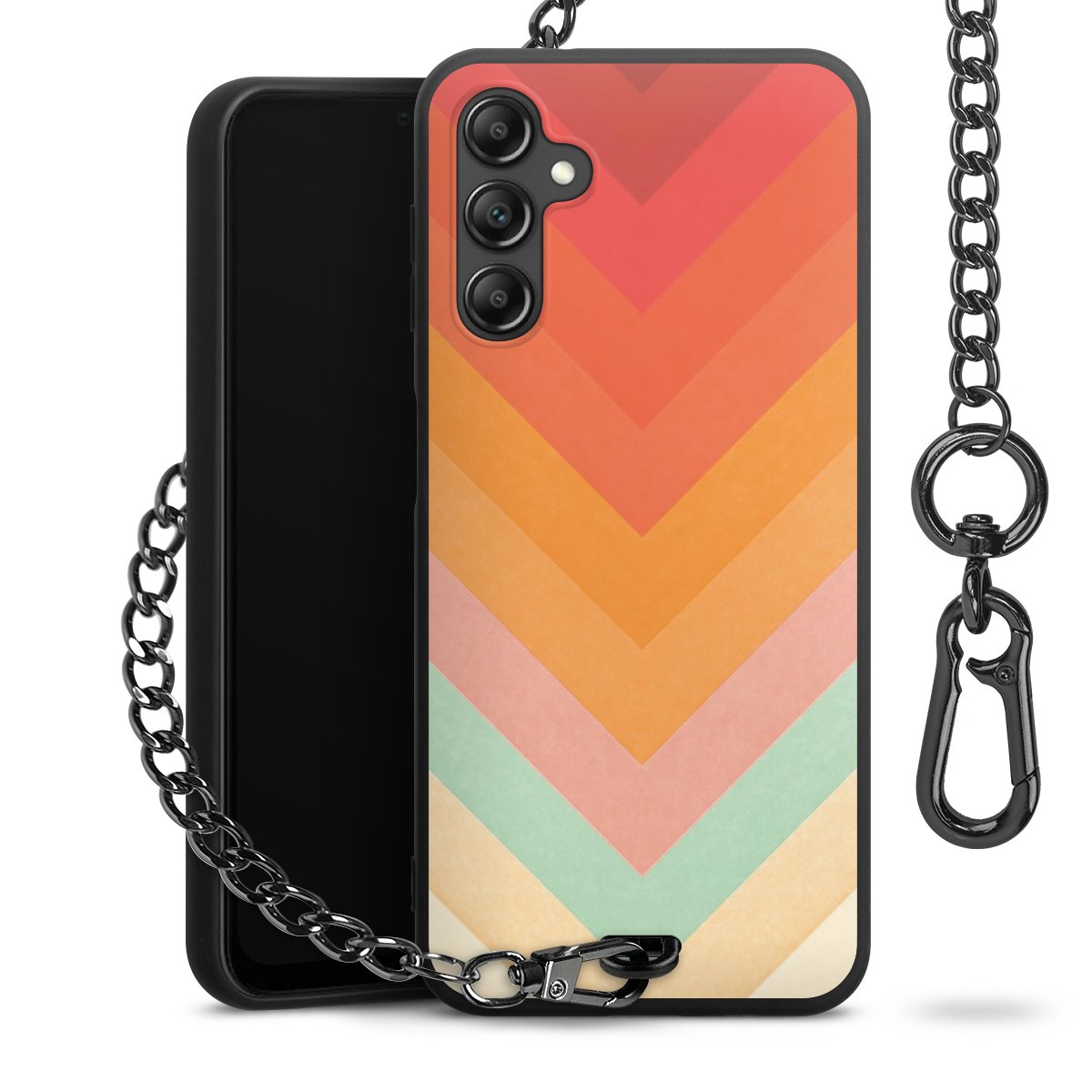 • Mattschwarze Handyhülle mit Metallkette
