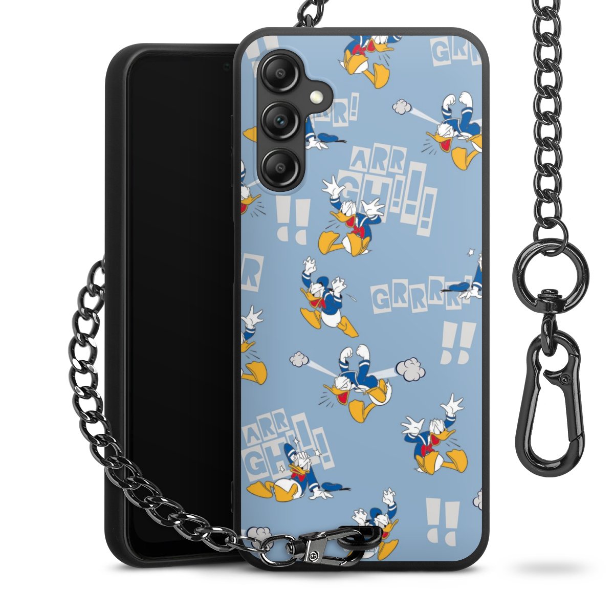 • Mattschwarze Handyhülle mit Metallkette