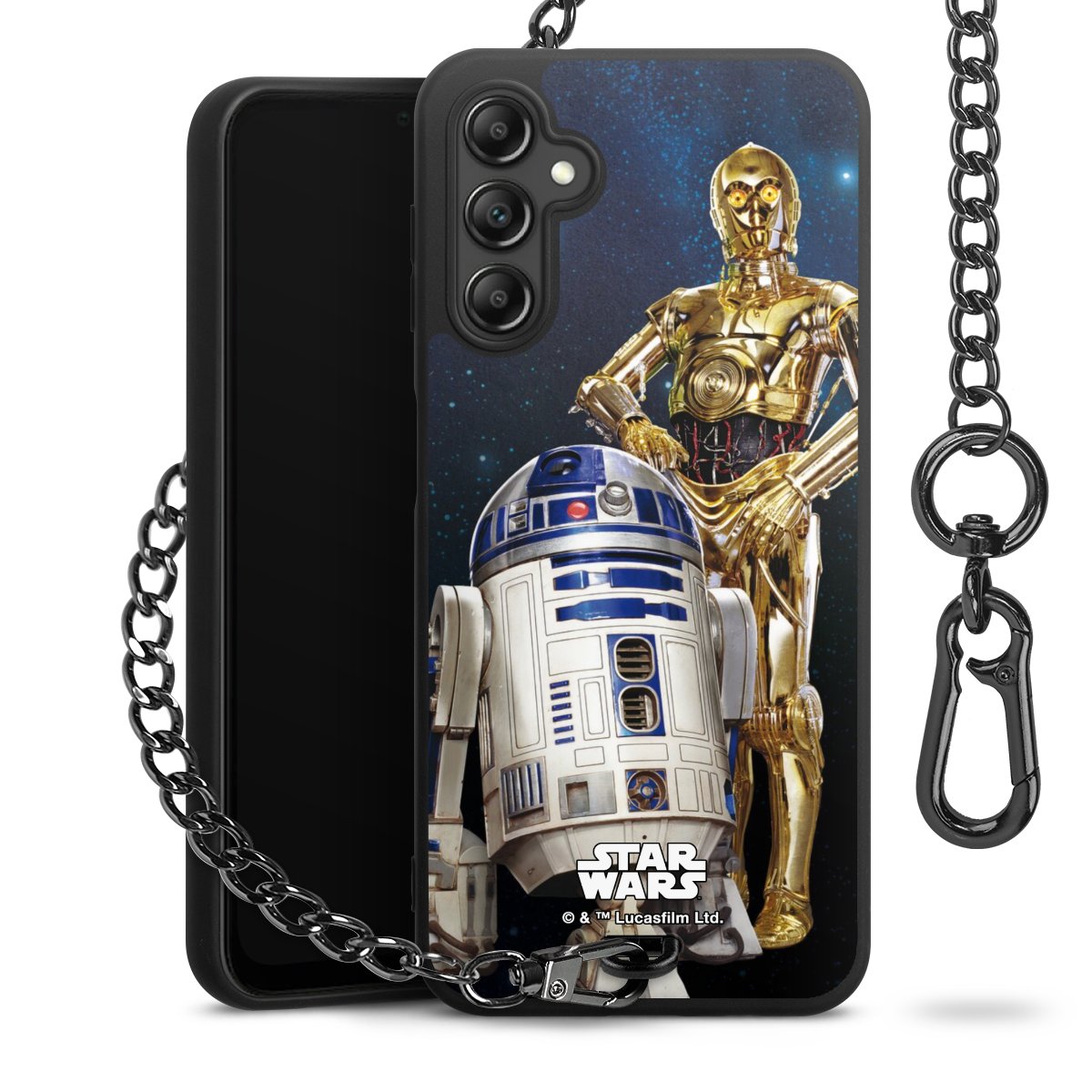 Darth Vader, C3PO, R2D2 und Meister Yoda findest Du in unserem Star Wars Shop auf DeinDesign. Natürlich gibt es auch Star Wars Handyhüllen mit den legendären Charakteren Luke Skywalker, Prinzessin Leia und Han Solo, den Helden der ersten Saga. Wer jedoch die Hauptfiguren der neuen Star Wars Filme ins Herz geschlossen hat, kann auch Finn und Rey mit ihren mächtigen Waffen auf der Rückseite seines Smartphones haben. Die vielseitigen Schutzhüllen in verschiedenen Ausführungen sind das perfekte Geschenk für alle Star Wars Fans, die ihrem Smartphone eine individuelle Note verleihen wollen.
