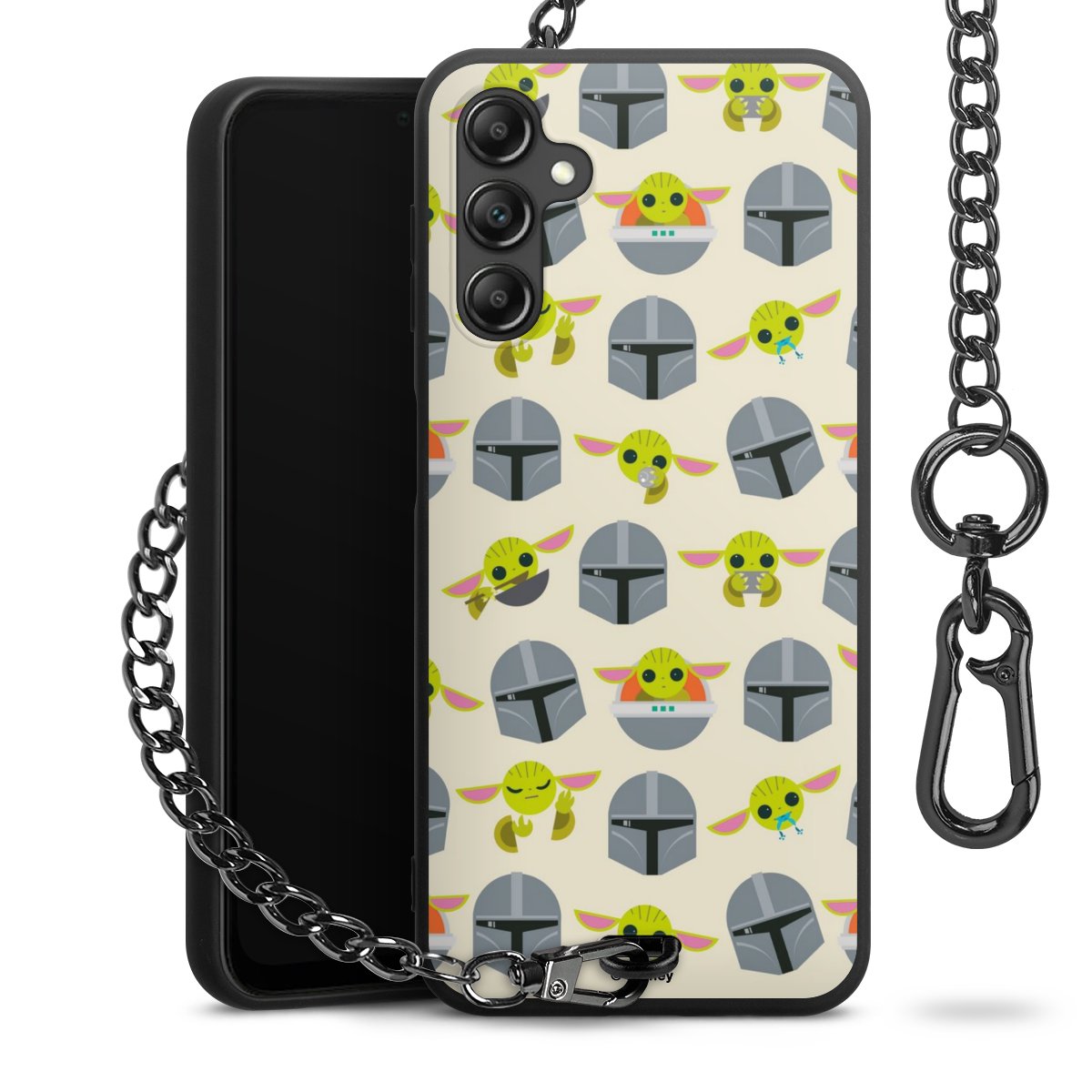 Die mattschwarze Silikon-Handyhülle besteht aus robustem TPU (thermoplastisches Polyurethan). Sie ist flexibel und schützt Dein Smartphone vor Stößen und Kratzern. Die Kette sowie der Karabinerhaken sind aus Metall in Gunmetal-Optik gefertigt. Für dieses Produkt kommen ausschließlich TÜV-geprüfte Materialien zum Einsatz.