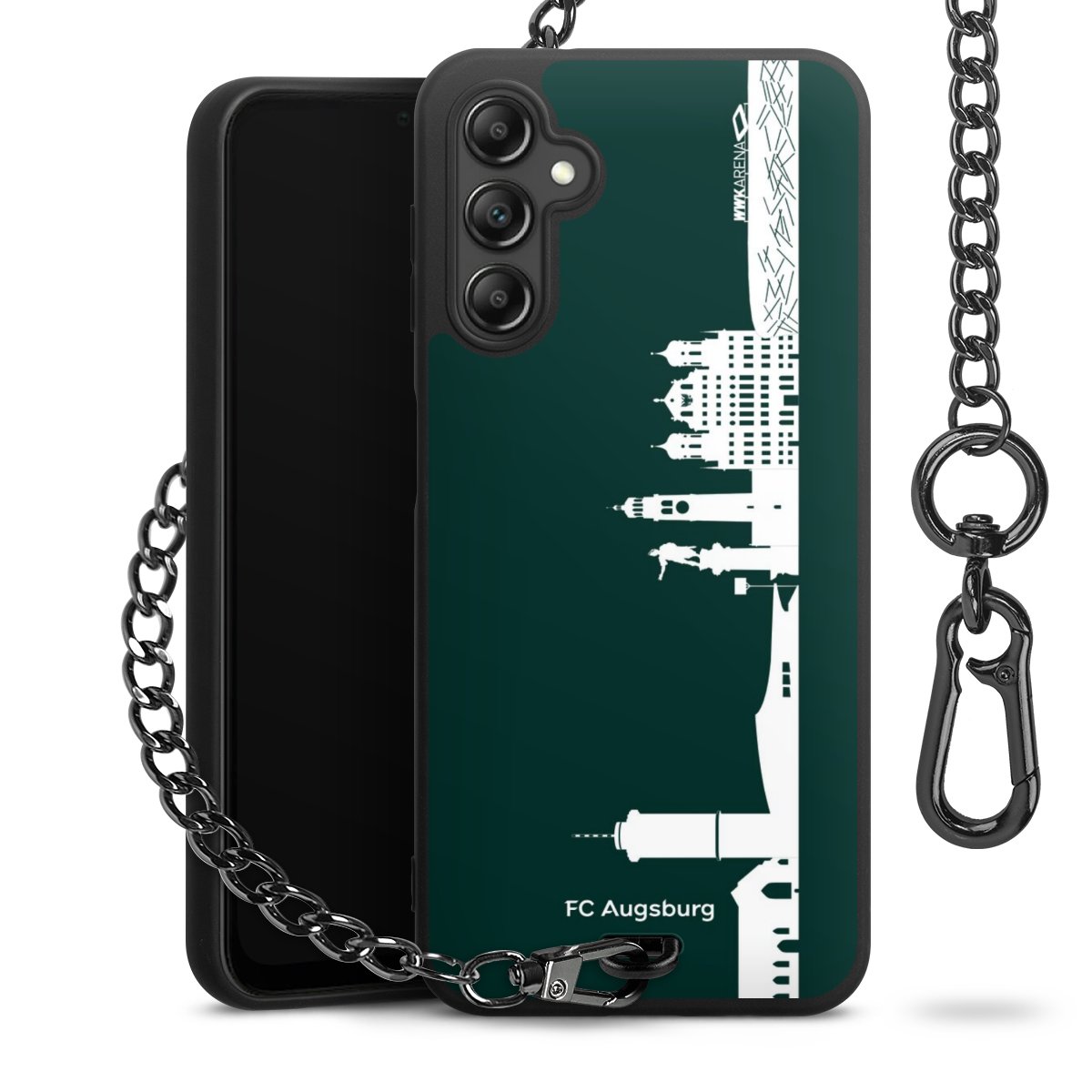 • Mattschwarze Handyhülle mit Metallkette