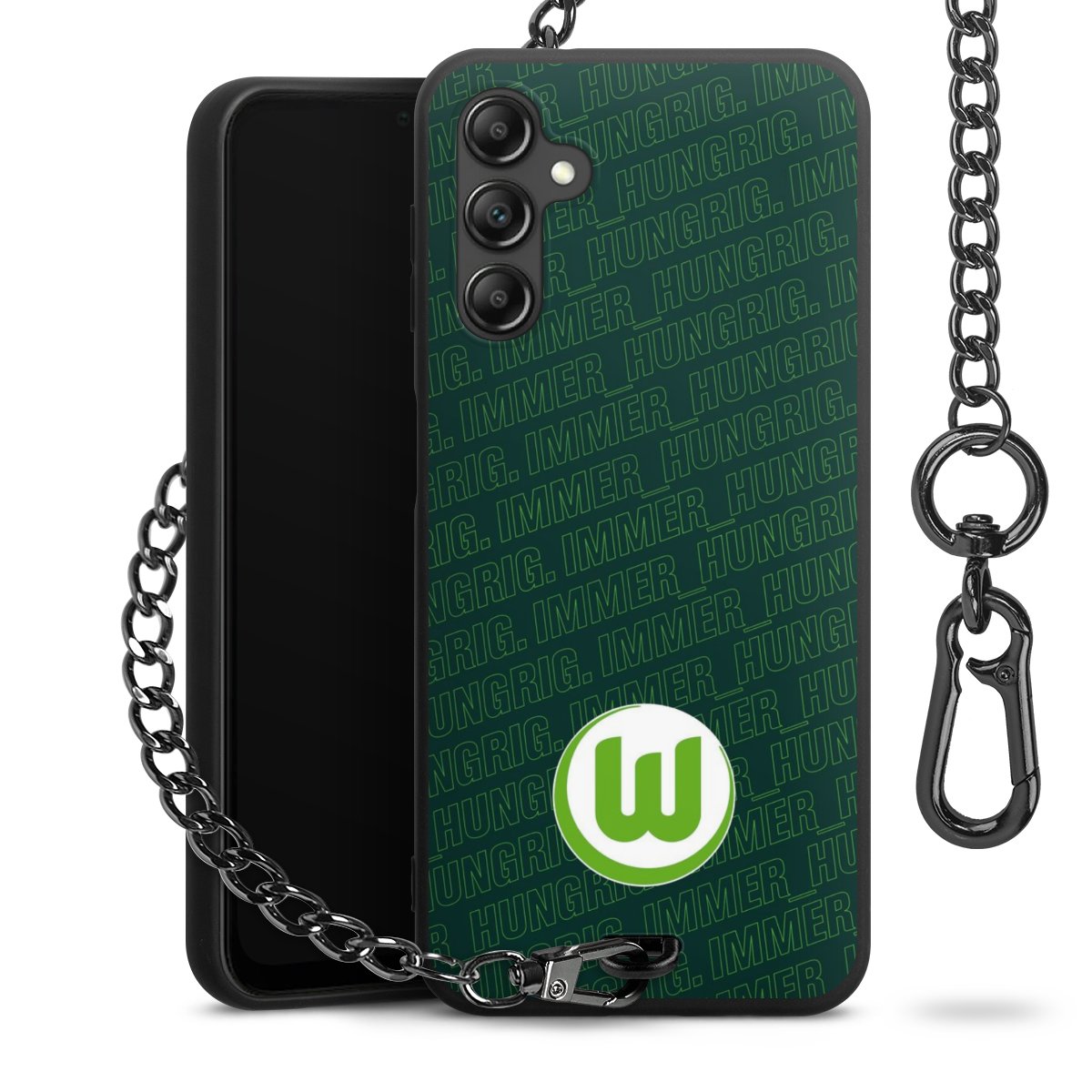 Die mattschwarze Silikon-Handyhülle besteht aus robustem TPU (thermoplastisches Polyurethan). Sie ist flexibel und schützt Dein Smartphone vor Stößen und Kratzern. Die Kette sowie der Karabinerhaken sind aus Metall in Gunmetal-Optik gefertigt. Für dieses Produkt kommen ausschließlich TÜV-geprüfte Materialien zum Einsatz.