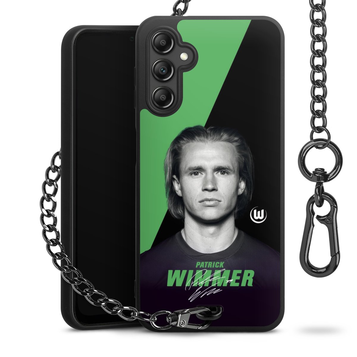 • Mattschwarze Handyhülle mit Metallkette