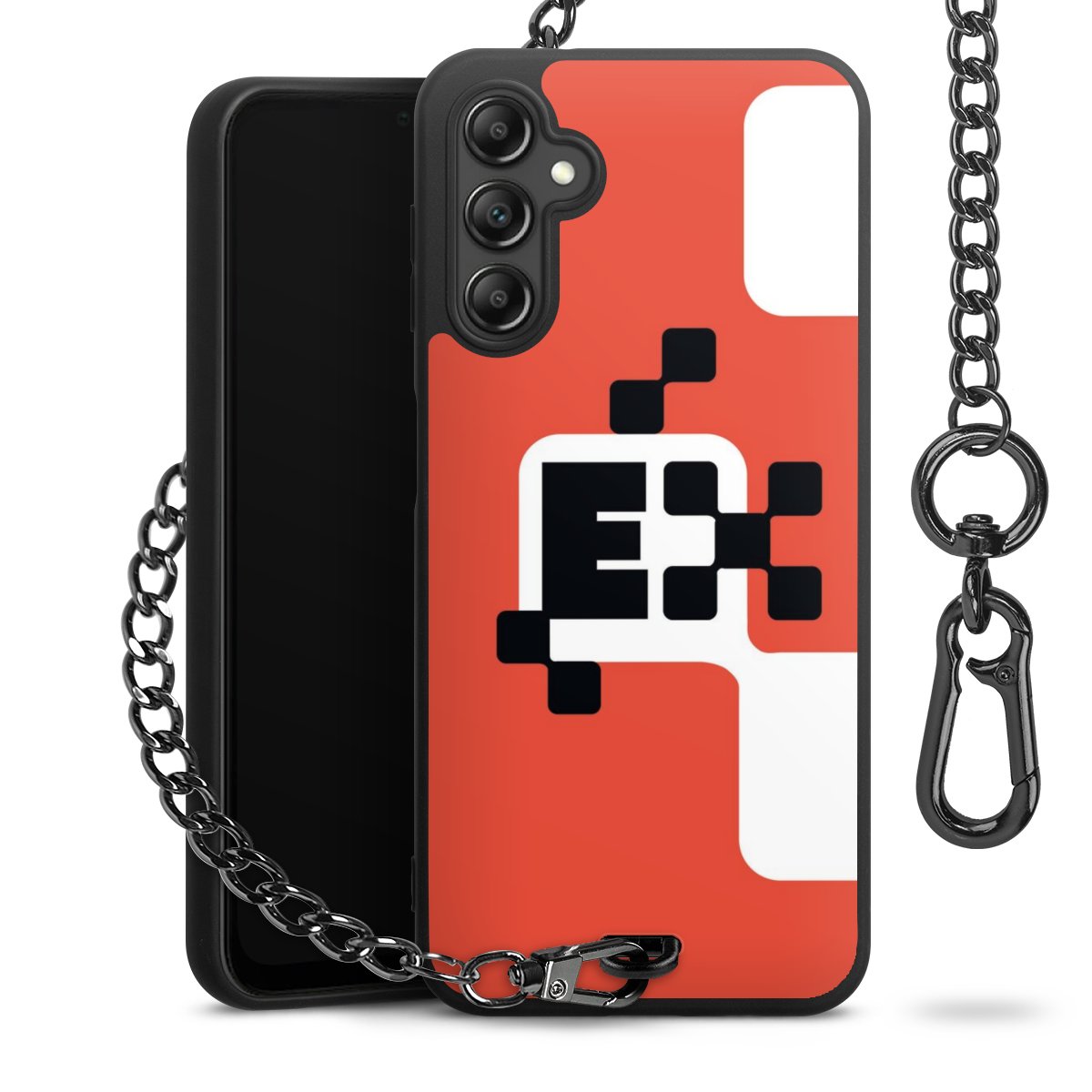 - Mattschwarze Handyhülle mit Metallkette