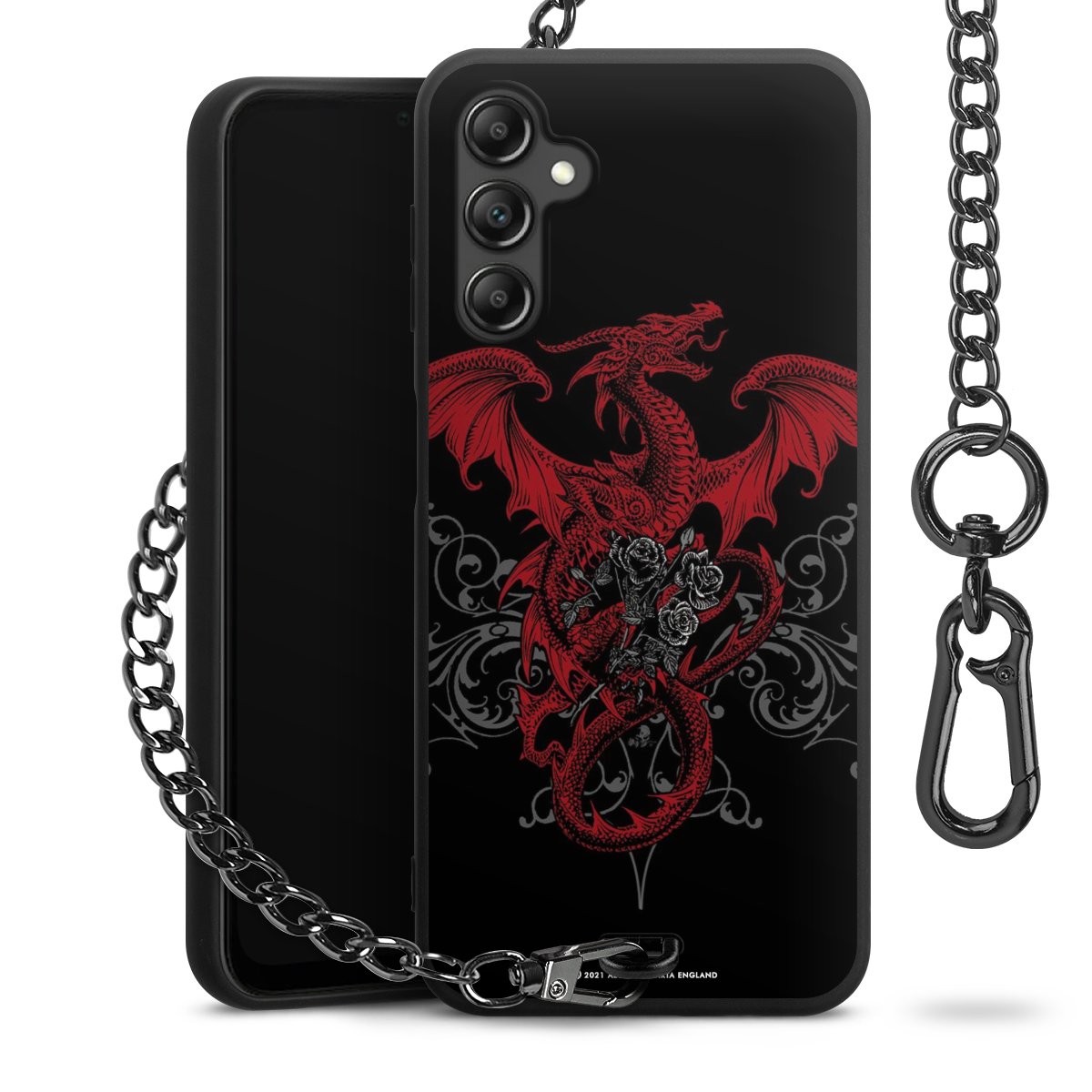 Die mattschwarze Silikon-Handyhülle besteht aus robustem TPU (thermoplastisches Polyurethan). Sie ist flexibel und schützt Dein Smartphone vor Stößen und Kratzern. Die Kette sowie der Karabinerhaken sind aus Metall in Gunmetal-Optik gefertigt. Für dieses Produkt kommen ausschließlich TÜV-geprüfte Materialien zum Einsatz.