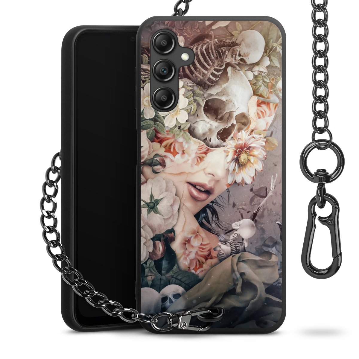 • Mattschwarze Handyhülle mit Metallkette