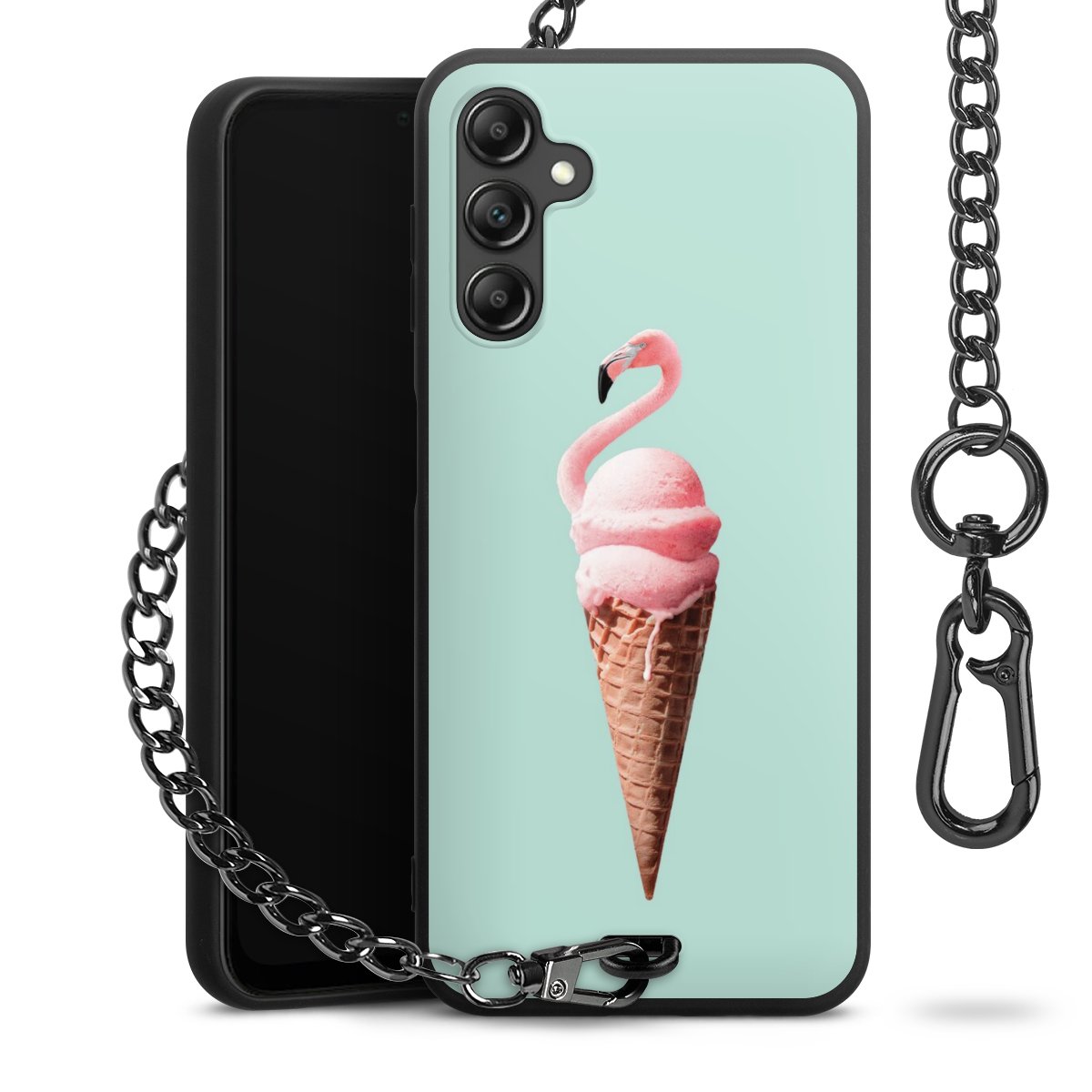 • Mattschwarze Handyhülle mit Metallkette