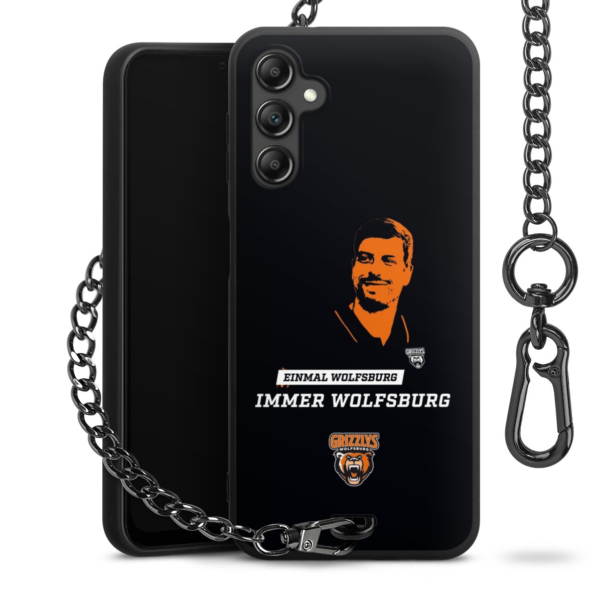- Mattschwarze Handyhülle mit Metallkette