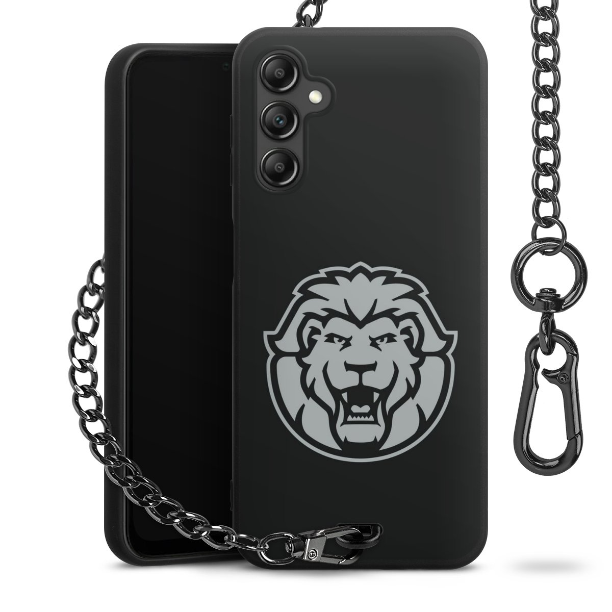 - Mattschwarze Handyhülle mit Metallkette