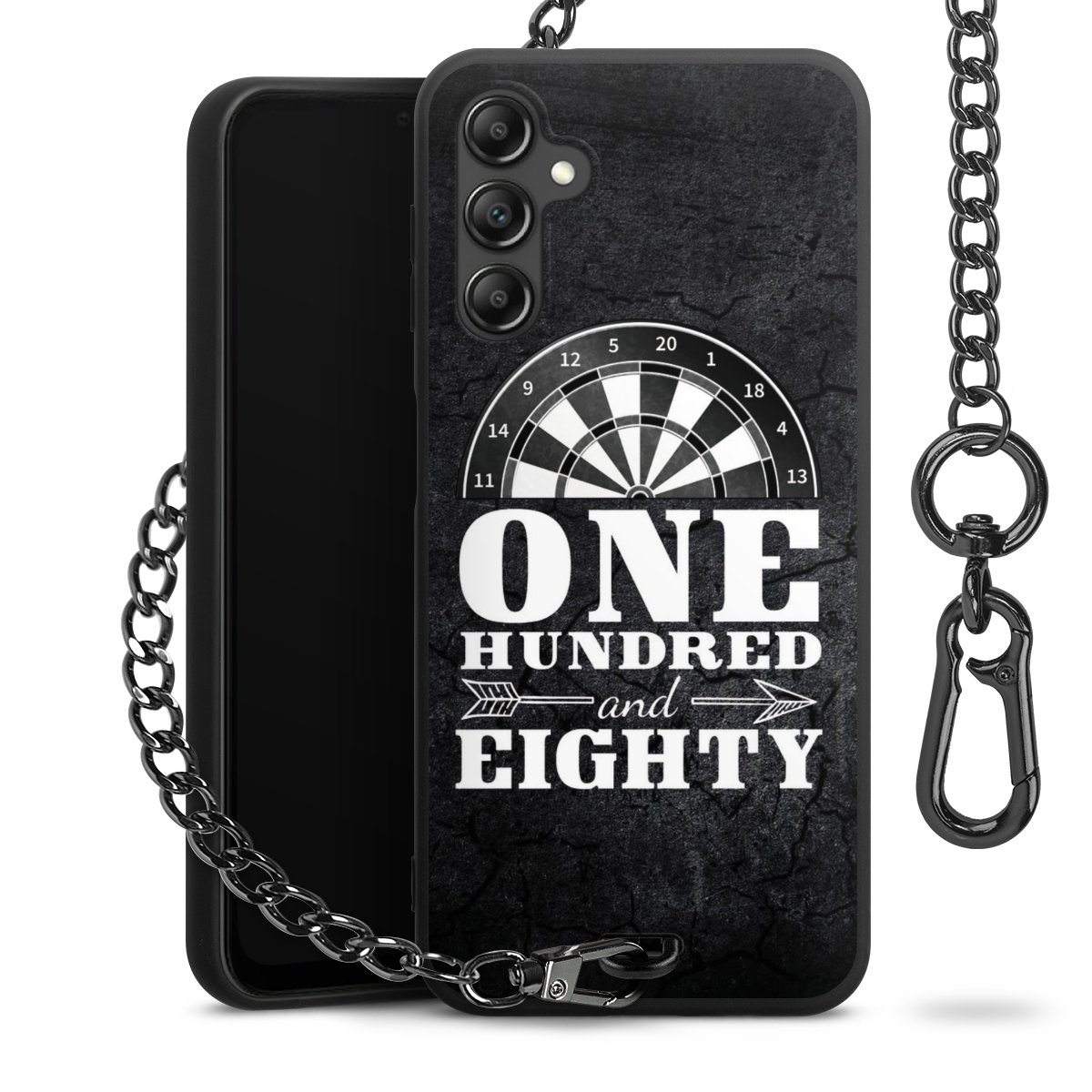 - Mattschwarze Handyhülle mit Metallkette