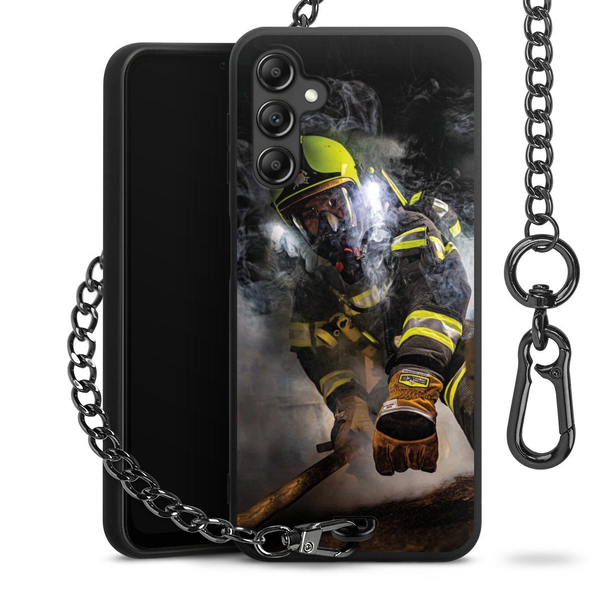 • Mattschwarze Handyhülle mit Metallkette
