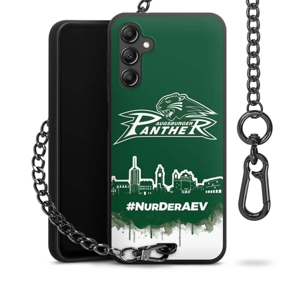 Die mattschwarze Silikon-Handyhülle besteht aus robustem TPU (thermoplastisches Polyurethan). Sie ist flexibel und schützt Dein Smartphone vor Stößen und Kratzern. Die Kette sowie der Karabinerhaken sind aus Metall in Gunmetal-Optik gefertigt. Für dieses Produkt kommen ausschließlich TÜV-geprüfte Materialien zum Einsatz.