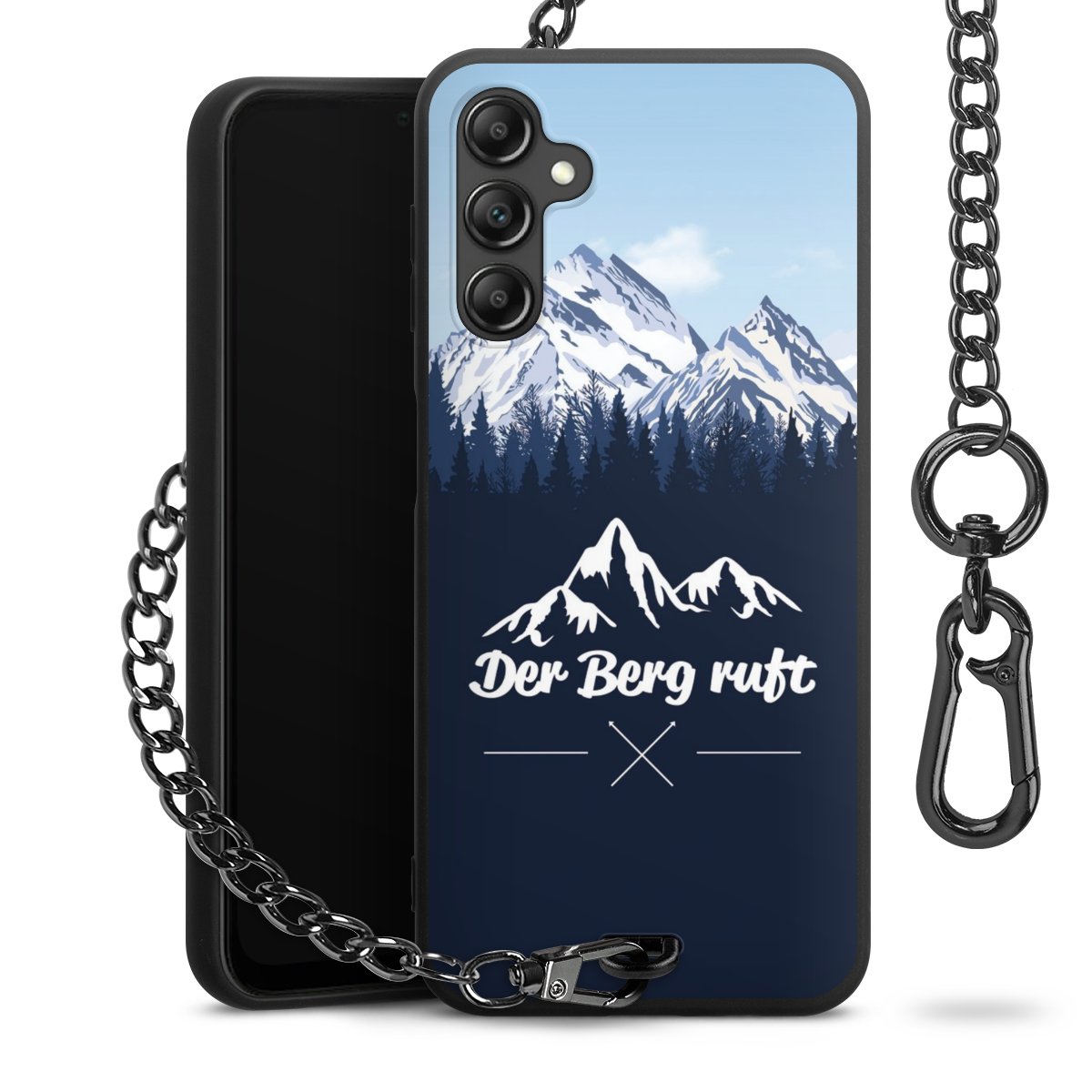 • Mattschwarze Handyhülle mit Metallkette