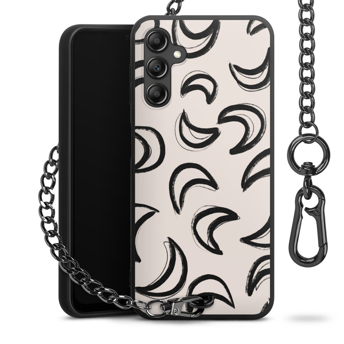 • Mattschwarze Handyhülle mit Metallkette