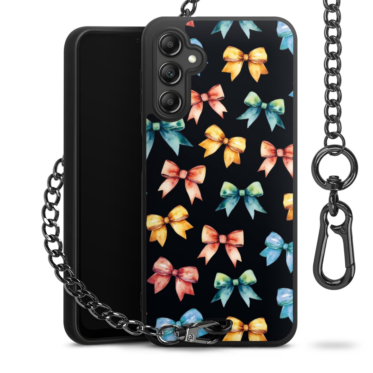 • Mattschwarze Handyhülle mit Metallkette