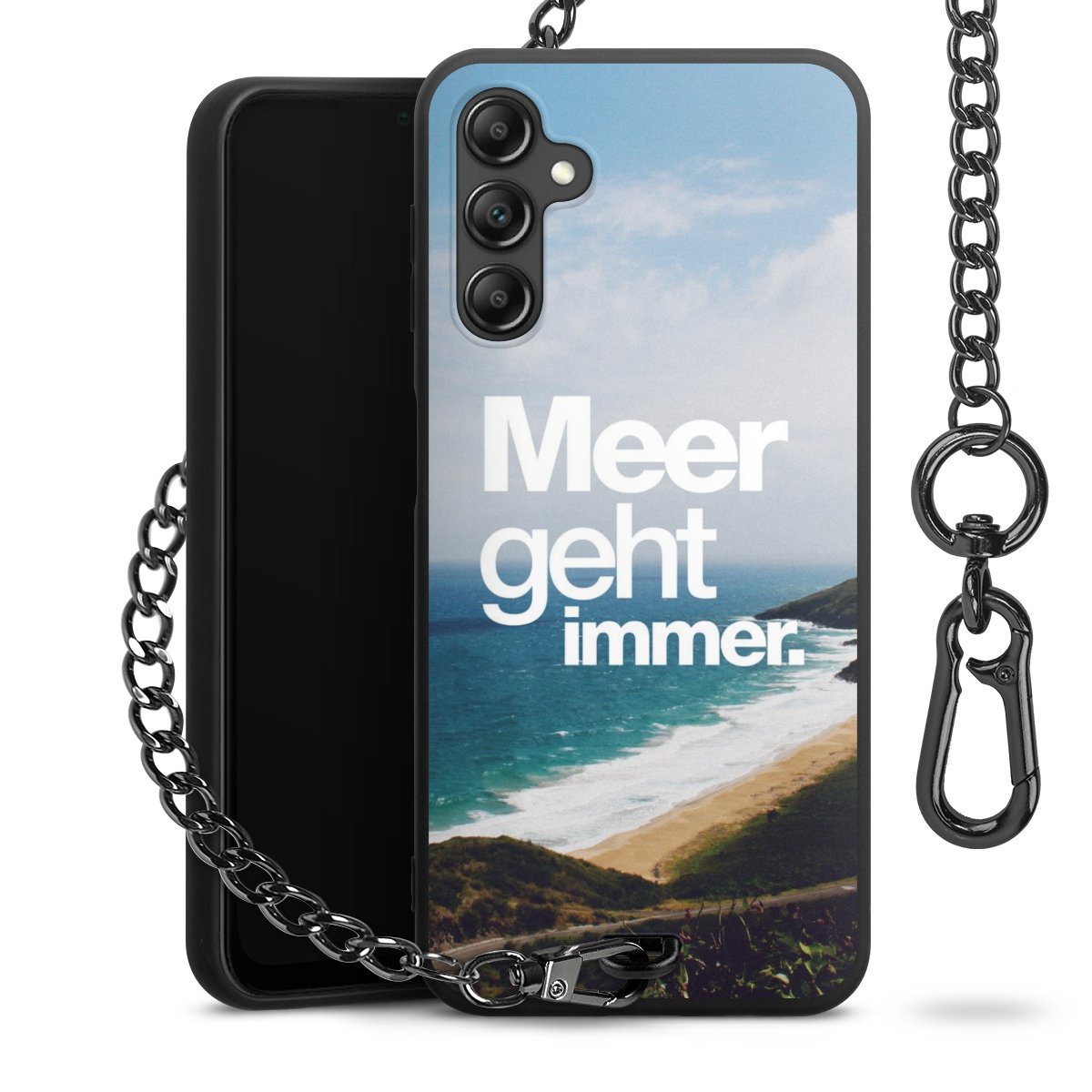 • Mattschwarze Handyhülle mit Metallkette