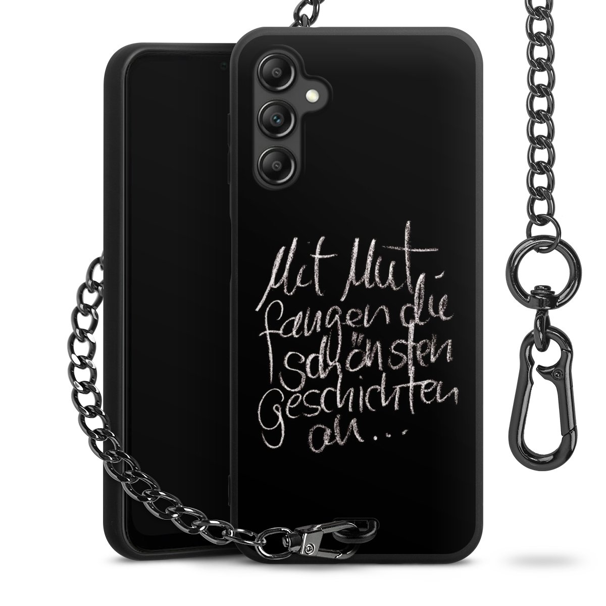 • Mattschwarze Handyhülle mit Metallkette