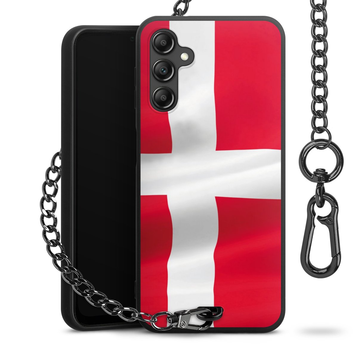 - Mattschwarze Handyhülle mit Metallkette