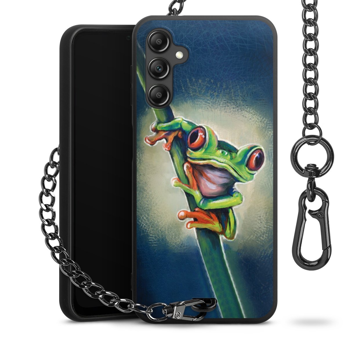 • Mattschwarze Handyhülle mit Metallkette